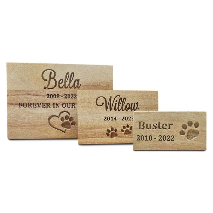 Discover a lasting and meaningful way to pay tribute to your cherished pet with our natural sandstone memorials. Each piece is completely one-of-a-kind, showcasing beautiful organic hues and designs.
